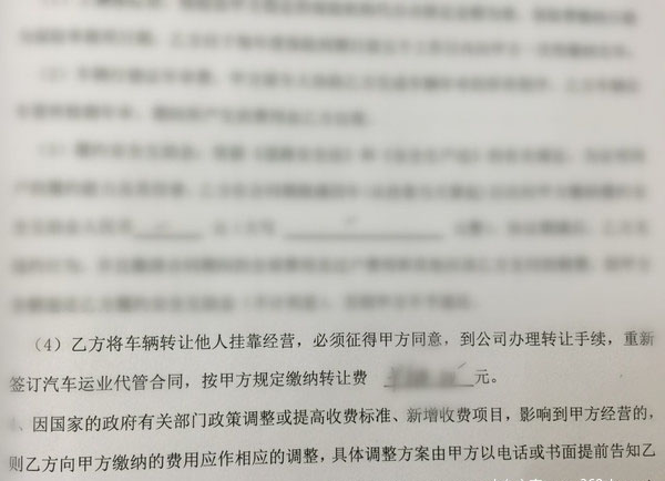 用戶掛靠公司那么就會(huì)產(chǎn)生管理費(fèi)用,這個(gè)管理費(fèi)全國(guó)各地的收費(fèi)都不一樣,國(guó)家也沒(méi)有統(tǒng)一的收費(fèi)規(guī)定。用戶在選擇公司的時(shí)候也多對(duì)比一下。同時(shí)掛靠公司還會(huì)強(qiáng)制要求代買車輛保險(xiǎn),大家也知道買保險(xiǎn)是有回扣的,當(dāng)然這錢也不能白賺,當(dāng)車輛出現(xiàn)事故的時(shí)候,從事故處理到保險(xiǎn)理賠基本上都會(huì)由公司搞定。除此之外,像年審、補(bǔ)辦證件、二級(jí)維護(hù)保養(yǎng)等項(xiàng)目也基本上都由掛靠公司代辦,有些公司補(bǔ)辦證件的收費(fèi)也高達(dá)好幾百元,所以用戶在簽約時(shí)最好能夠看清楚。