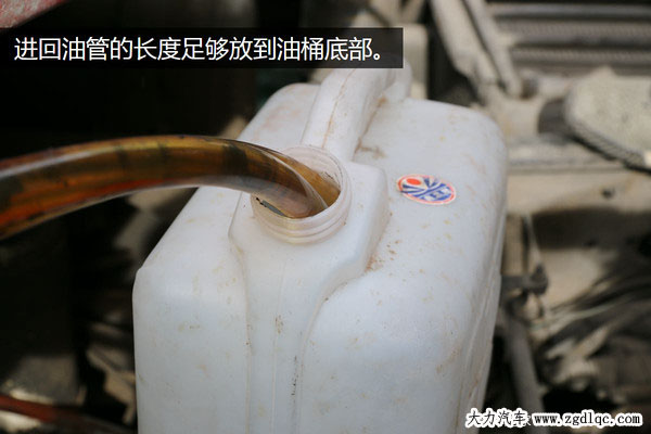經過一番努力,副油箱的出油和回油管都已經被拆卸下來,并且管子的長度也足夠放到塑料容器的底部,接下來開始準備測試用的柴油。