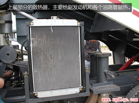 上裝部分的散熱器,主要給副發(fā)動(dòng)機(jī)和各個(gè)油路管散熱。夏季溫度高,吸塵車工作時(shí)都會(huì)用到散熱器。選用國內(nèi)品牌散熱器,使用壽命長、工作效率高。