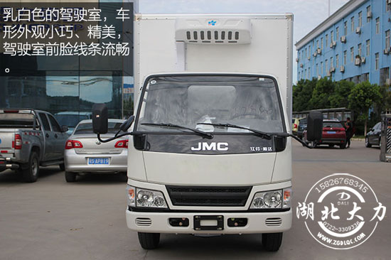 江鈴順達(dá)冷藏車的駕駛室采用流線型設(shè)計,外觀方方正正,各邊棱角分明。車窗面積擴(kuò)大,為駕駛員提供了良好的駕駛視野。霧燈、大燈、轉(zhuǎn)向燈一字排開安裝,梯形設(shè)計更美觀。江鈴順達(dá)的經(jīng)典LOGO標(biāo)志“JMC”位于整個駕駛室的正中間,標(biāo)志明顯易見。