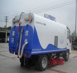 DLQ5070TSLE3 型掃路車采用慶鈴NKR77LLNACJAY 型二類汽車底盤改裝,加裝動力系統(tǒng)、風(fēng)機(jī)傳動系統(tǒng)、灑水系統(tǒng)、液壓系統(tǒng)、電氣系統(tǒng)、清掃作業(yè)裝置、副車架、垃圾箱等改裝而成,排放達(dá)到歐Ⅲ標(biāo)準(zhǔn)。其主要配套件:主、副發(fā)動機(jī)均為基于五十鈴技術(shù)的柴油發(fā)動機(jī)、寧波中意擺線馬達(dá)、中法合資的電控元件等;垃圾箱的傾翻、垃圾箱后門的開和關(guān)、掃盤的旋轉(zhuǎn)、吸嘴的升降均采用液壓傳動,電、液集中控制;主要液壓元件采用優(yōu)質(zhì)進(jìn)口件,整機(jī)性能良好、可靠。該車采用以吸為主、吸掃結(jié)合、濕式除塵的工作原理對路面進(jìn)行清掃作業(yè),具有清掃效率高,二次污染小,維修方便快捷等特點(diǎn),是城市道路、高速公路、機(jī)場、碼頭等地面理想的清掃、保潔作業(yè)設(shè)備,具備地面清掃、深坑清污等功能,是一款機(jī)多用的設(shè)備。