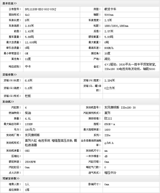 東風(fēng)天錦(180馬力)4X2排半載貨汽車