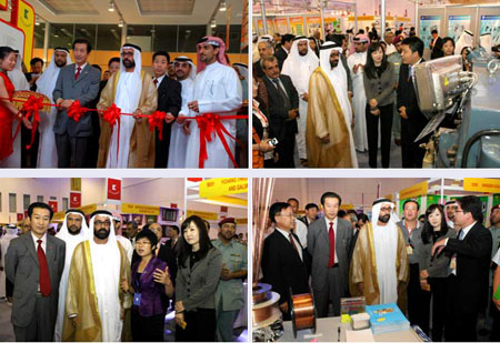 中國駐阿聯(lián)酋大使 高育生 先生、中國駐阿聯(lián)酋總領事 詹京保 先生、中國商務部國際經(jīng)濟技術交流中心副主任趙中屹 先生、沙迦工商會副主席穆罕默德·蘇爾坦·本·胡瓦鄧( Mr. Mohammed Sultan Bin Houwaden )先生為本屆交易會開幕式剪彩。