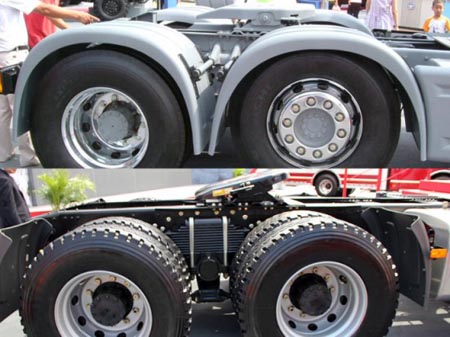 當(dāng)年的J6HC采用了6×2的驅(qū)動形式,第二橋?yàn)榭商嵘慕Y(jié)構(gòu),驅(qū)動橋則采用空氣懸掛。目前的J6H采用6×4的驅(qū)動形式。當(dāng)然,J6H應(yīng)該是一個系列,會有各種配置的產(chǎn)品。不過取消了驅(qū)動橋的輪罩有些遺憾。