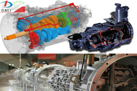 從結(jié)構(gòu)上看,法士特的雙中間軸變速箱基本上還是延續(xù)美國(guó)EATON的設(shè)計(jì)思路,但是在大扭矩變速箱上不裝強(qiáng)制潤(rùn)滑油泵,尤其長(zhǎng)時(shí)間爬坡以及高速重載下坡的情況下,在副箱上存在一定的不穩(wěn)定因素;可喜的是我們?cè)诒本┸?chē)展上看到了類(lèi)似油泵的設(shè)計(jì),只不過(guò)并沒(méi)有運(yùn)用在這次展出的AMT變速箱中,從驅(qū)動(dòng)形式上看,此種比較像后副箱驅(qū)動(dòng)類(lèi)型。