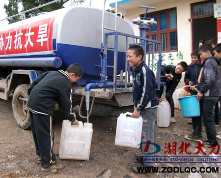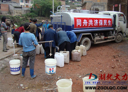 記者了解到,東蘭縣消防大隊從去年8月份開始每天都會為缺水村民送水,哪里缺水就把水運到哪兒!拔覀兇箨犛2輛水車,每天7點多就出發(fā)為村民送水,一車能裝6頓水,最忙的時候一天運了8次水!睎|蘭縣消防大隊中隊長趙志峰說,“這些都是從湖北大力購回的運水車,車子的質(zhì)量很不錯,而且價格也很合理!