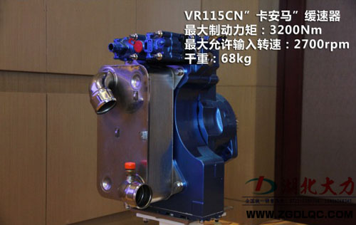 針對中國市場福伊特推出了卡安馬VR115CN液力緩速器。基本參數(shù)如圖所示,最大扭矩:3200Nm,最大允許輸入轉速2700rpm,自重僅為78kg。并聯(lián)式結構,安裝在變速器后面,同時不會影響取力器接口的安裝。