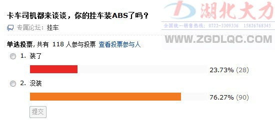 ABS的作用除了大家熟知的安全,其實(shí)對經(jīng)濟(jì)效益的提升也有不少幫助。首先來看看現(xiàn)在ABS的使用情況,我們在論壇做了一個(gè)簡單的調(diào)查: